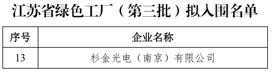 绿色工厂是制造业的生产单元,是绿色制造的实施主体,属于绿色制造体系的核心支撑单元,侧重于生产过程的绿色化。杉金光电入围省级绿色工厂,标志着企业在节能环保、绿色发展等方面处于行业领先水平。